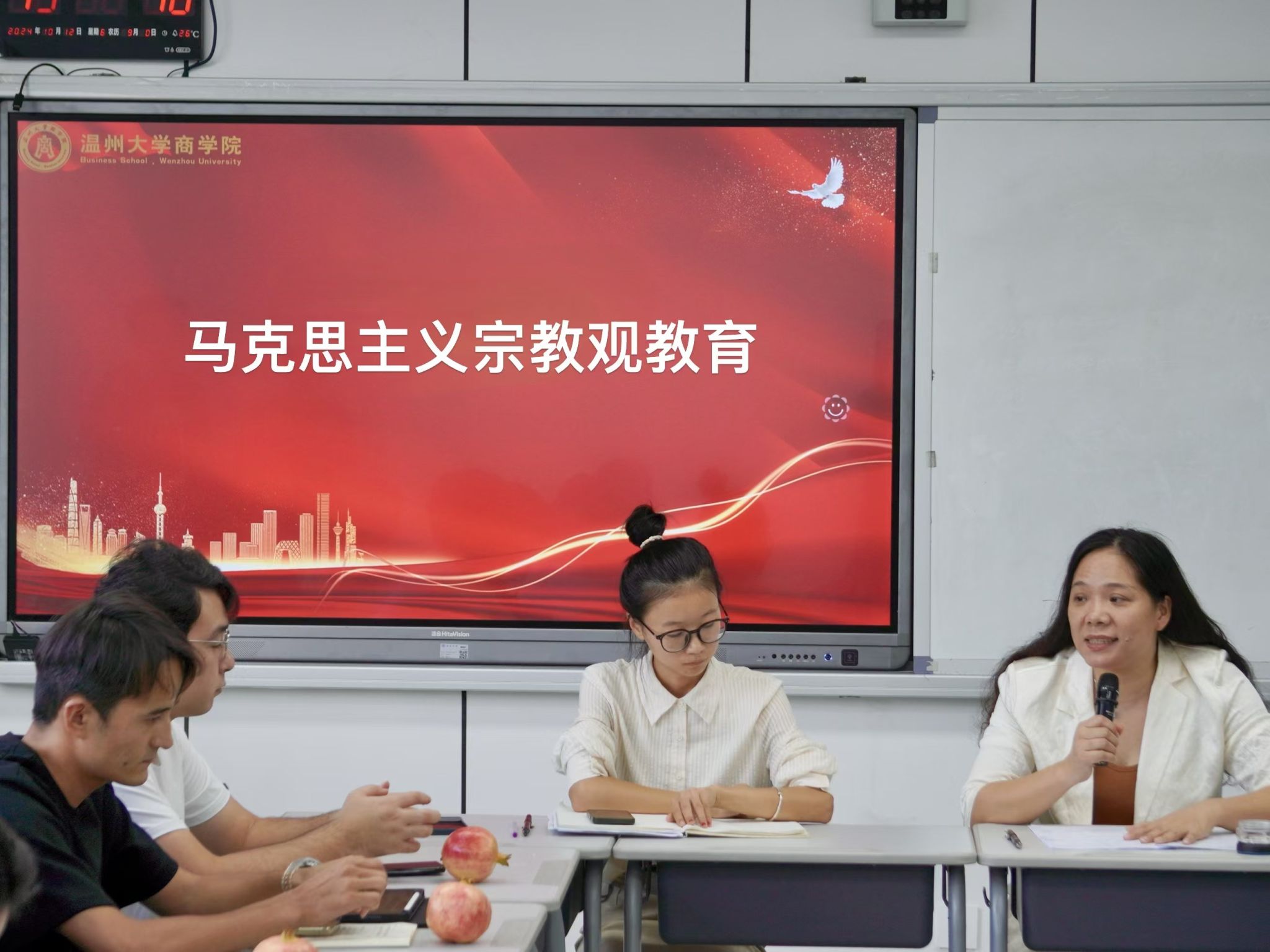 其次,学院党委副书记曾蓓蕾作《马克思主义宗教观》专题讲座。曾蓓蕾副书记从马克思主义宗教观的基本内涵入手,详细阐释了宗教的本质、产生根源及其社会作用。她还结合中国国情,深入解读了中国共产党关于宗教工作的方针政策,强调我国是一个多民族、多宗教的国家,宗教工作关系到国家的稳定和发展。中国共产党坚持宗教信仰自由政策,依法管理宗教事务,积极引导宗教与社会主义社会相适应,努力构建和谐健康的宗教关系。少数民族学生身处多元文化交融环境,更应秉持科学态度对待宗教。一方面,要尊重本民族宗教信仰传统,了解其历史、文化价值;另一方面,要以马克思主义宗教观为指导,理性看待宗教现象,避免盲目跟从。在日常学习、生活中,积极传播马克思主义宗教观,与同学交流探讨,增进对不同宗教文化的理解与包容,为构建和谐校园、促进民族团结贡献智慧与力量。