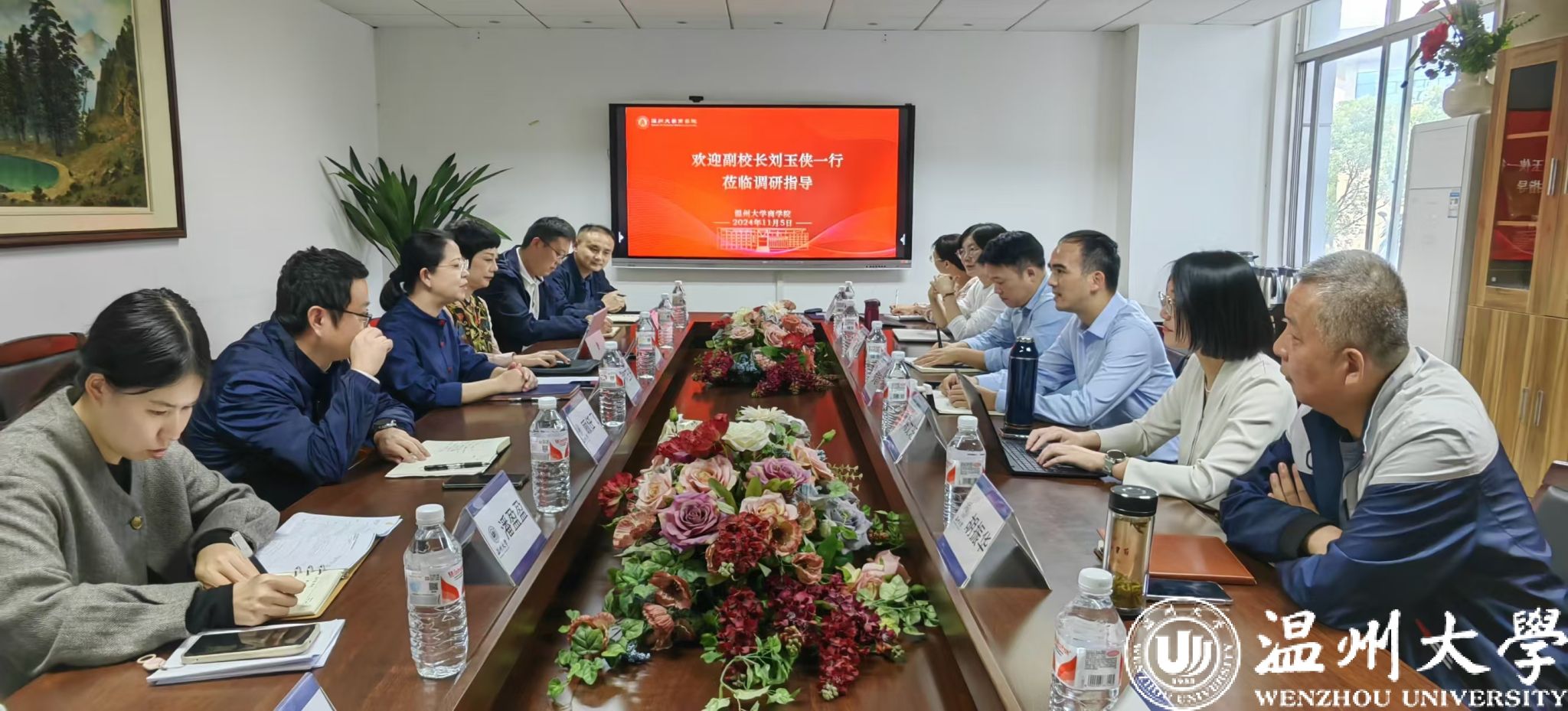 11月5日下午,温州大学党委委员、副校长刘玉侠一行莅临学院就申博、学科、学位点建设以及研究生教育等相关工作进行调研交流。计划财务处处长张若妤、研工部副部长兼研究生院副院长顾任飞、党校办专聘副主任张海波、学科建设与学术交流中心专聘副主任潘盈盈、学科建设与学术交流中心学科建设科王彬和陈啸冉参加了此次调研。学院院长罗建利、党委书记唐华等领导班子成员及学位点负责人参加了调研座谈会。