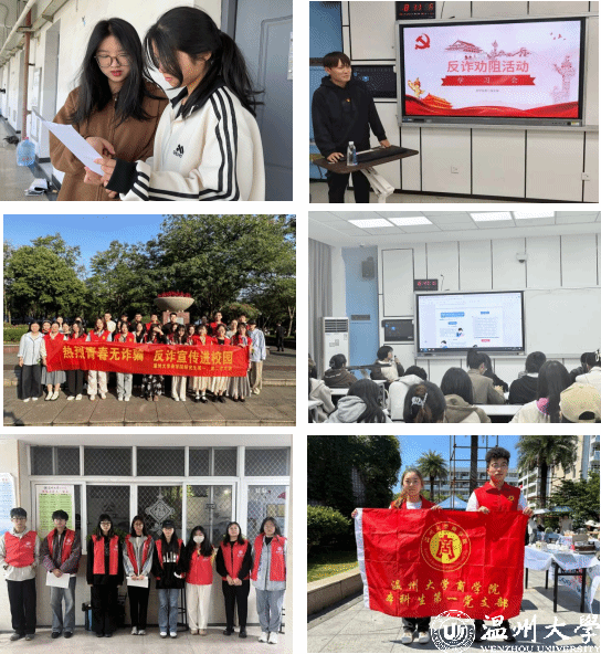学院各学生党支部积极开展活动,本科生第一党支部深入宿舍区发放宣传单,讲解网络诈骗等热点问题;本科生第二党支部在广场和宿舍开展宣传活动,传授诈骗手段识别方法;本科生第三党支部由支部书记讲解真实案例,提醒同学们提高警惕;本科生第四党支部结合党日活动,邀请入党积极分子代表解读《防范电信网络诈骗宣传手册》;本科生第五党支部组织志愿者进入宿舍,讲解金融反诈知识;研究生第一、二支部在招聘会现场开展“金融防诈”宣讲活动,提升同学们的防范意识。