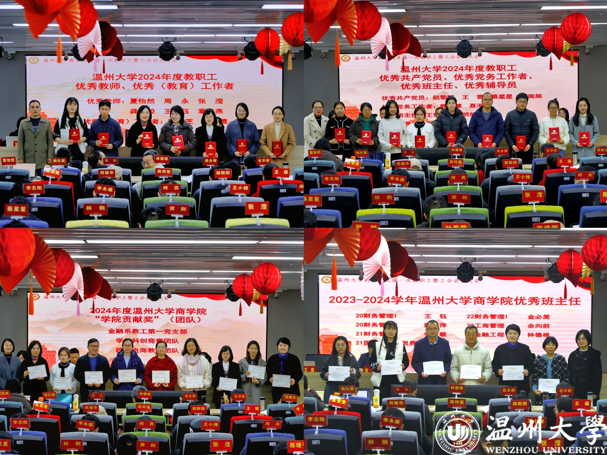 会议举行颁奖仪式,对温州大学2024年度教职工优秀共产党员、优秀党务工作者、优秀班主任、优秀辅导员、优秀教师、优秀(教育)工作者和2024年度杏吧原创