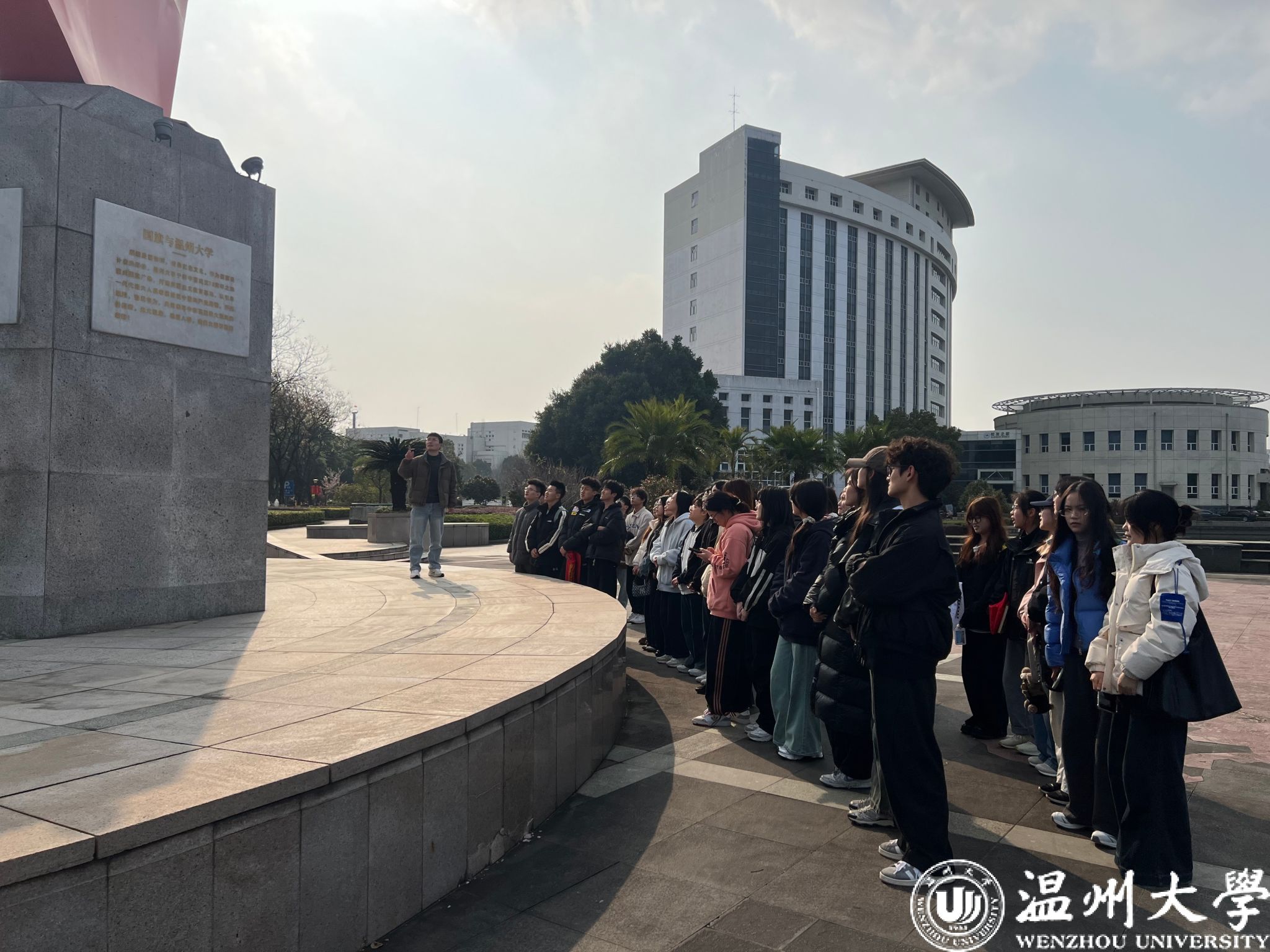 活动伊始,全体党员齐聚温州大学国旗广场。支部书记通过历史资料,系统回顾了曾联松校友在特定历史背景下,历时一个月完成国旗设计方案的全过程。重点阐释了国旗图案中红色象征革命、五星象征中国共产党领导的深刻内涵,使党员们深刻认识到国旗作为国家象征的重要意义及其背后的精神。