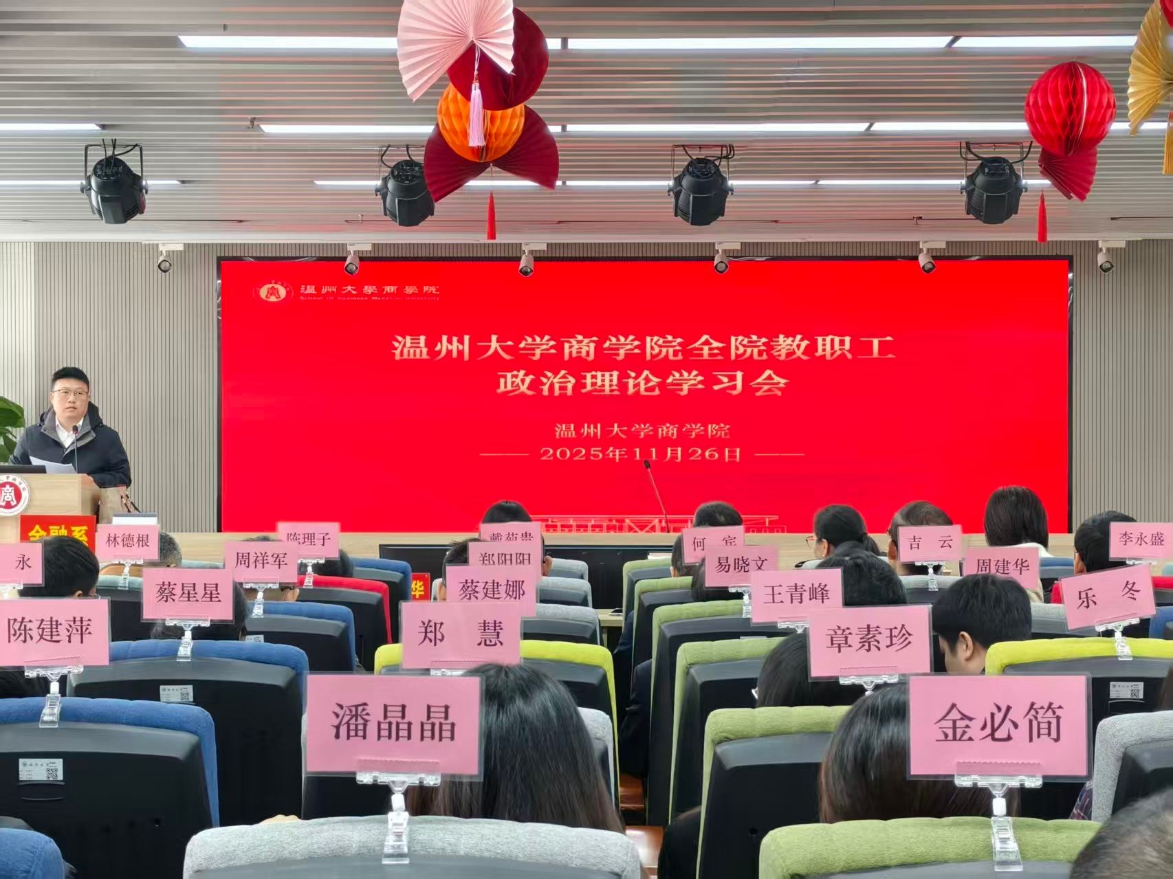 在商院楼A226仲辉商道讲堂举行全院教职工政治理论学习会,会议由学院党委书记唐华主持,学院全体教职工参加。