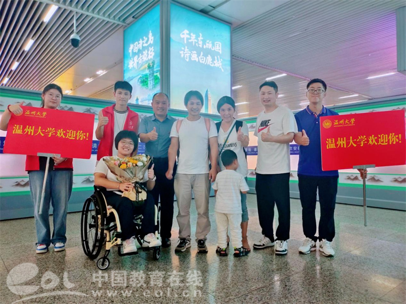 温州大学在了解到蔡同学的情况后,积极对接了解需求,为她制定了定向帮扶方案。安排专车、志愿者一对一接站,为她开辟了一条从高铁站直通寝室的“绿色通道”。接站时献上的鲜花,犹如蔡同学的未来一般鲜艳绚丽,寄托了学校对她的欢迎与期许。“让每一个特殊孩子绽放生命精彩”是温大不变的初心与使命。