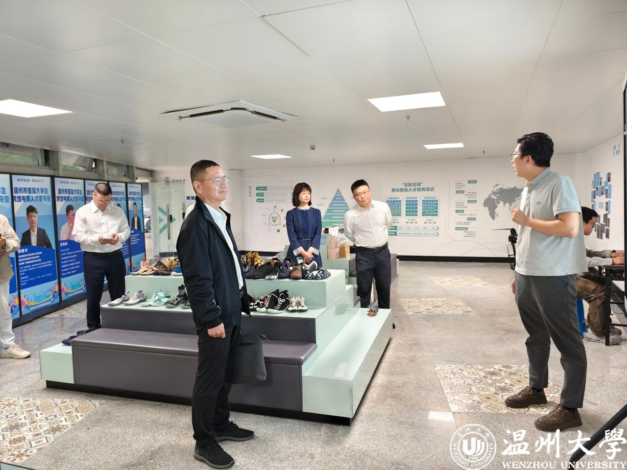 一行带领下,参会人员实地走访温州大学跨境电商创业园,详细了解园区“教学-实践-创业”闭环运营模式、供应链资源对接及企业孵化成果,为后续瓯商学堂联动园区资源、开展实战化培训积累实践参考。