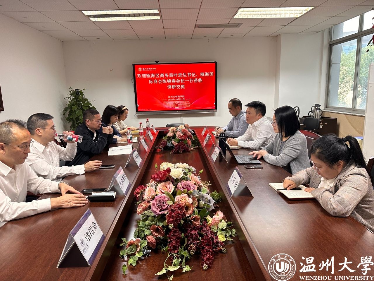 通过与政府合作,推出了不同分层课程体系,构建起成熟“政企校”协同模式,将全方位助力瓯海企业家实战培训。叶忠达书记提出“校友经济+消费场景”创新模式,为做强瓯商学堂品牌指明方向;瓯海区国际商会会长陈锦春建议联合温州大学专家团队开展企业家需求调研,以增强课程设置的针对性。双方围绕课程体系优化、资源整合深化、常态化运营机制完善等议题交换意见,进一步明确后续合作重点,旨在持续强化“政企校”协同效应,助力瓯海民营企业提升国际竞争力。