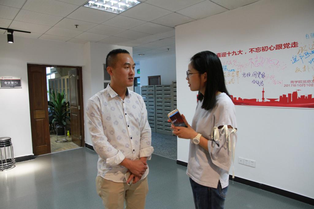 党总支副书记刘开练则向学生记者介绍了我院在近期为迎接十九大已举办的多形式系列活动。他认为十九大的召开是自信更是担当,要本着自信、自省、自强的态度与决心,立足本职岗位,把工作做到更好。同时,他鼓励同学们努力将学习与工作兼顾并做好,认真践行十九大精神。