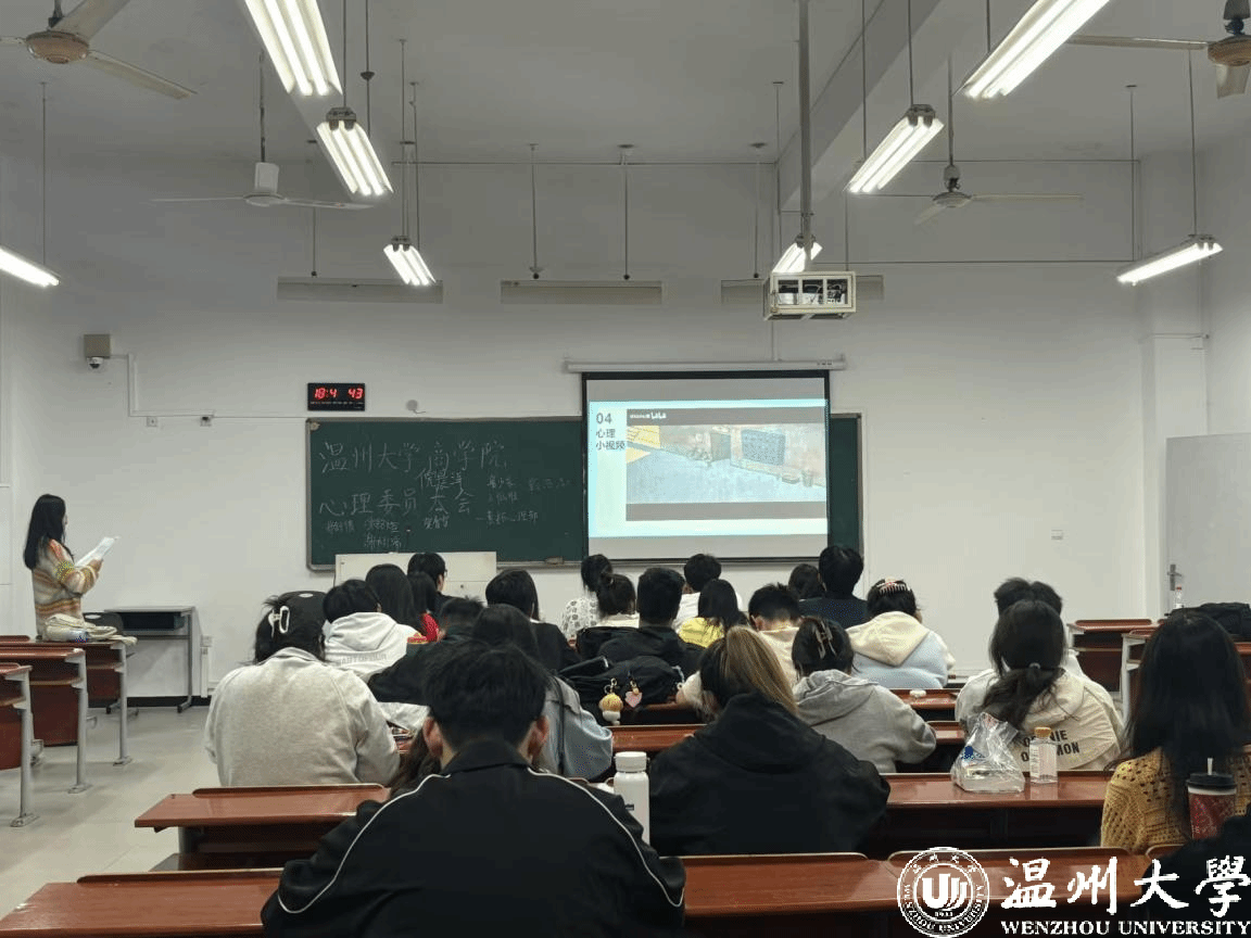 在心理周报填报示范结束后,大会进入了观看心理短片环节。一段轻松愉快的视频不仅激励了心理委员们以一种积极乐观的心态去感染和鼓舞同学们,还提醒他们要时刻关注每一位同学的心理健康,用爱和关怀去照亮他们前行的路,协助他们建立自信,缓解焦虑情绪。最后,心理委员们参与了一项心理小测试,旨在帮助他们更深入地探索自己的性格特点、优势和潜在的盲点,从而在心理健康工作中更好地定位自己的角色,进一步提升自身专业素质。