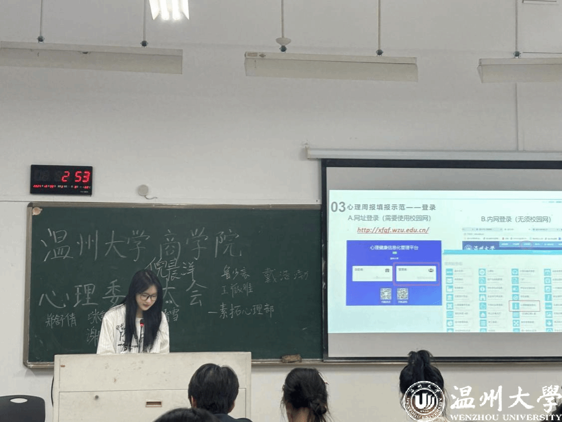 24级的各位心理委员依次进行自我介绍,期待着新成员能够迅速融入心理委员这个充满温暖的集体,并在未来的工作中展现出他们的才华与热情。紧接着,素拓心理部部长陆佳乐部长详细阐述了心理周报系统的使用方法和其重要性。心理周报不仅是记录学生心理健康状况的工具,也是心理委员及时发现问题、提供支持的有效途径,从而更好地促进校园心理健康教育的开展。通过系统的使用,心理委员们能够更有效地了解同学们的需求,提高心理活动的针对性和有效性。