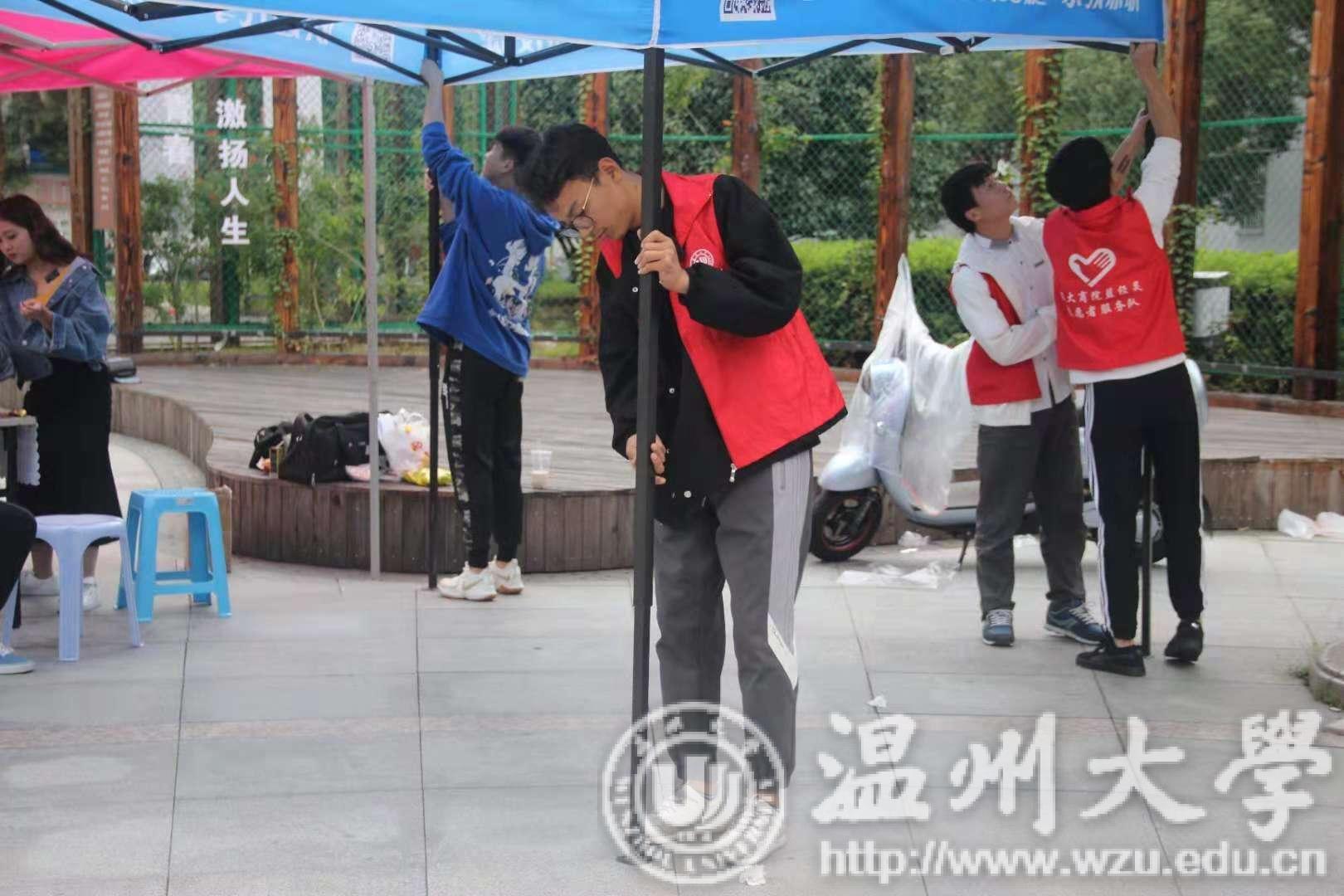 10月20日,温大商院蓝经灵志愿者在学区广场开展跳蚤市场志愿服务以帮助大学生在感受浓郁的创业气息的同时,投入到创业实践中去。