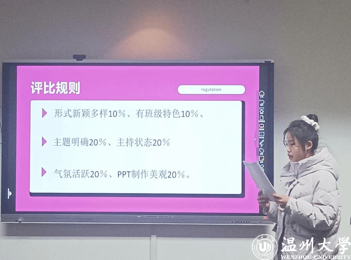 活动伊始,主持人周祖妍详细介绍了心理主题班会评选的评分标准与规则。
