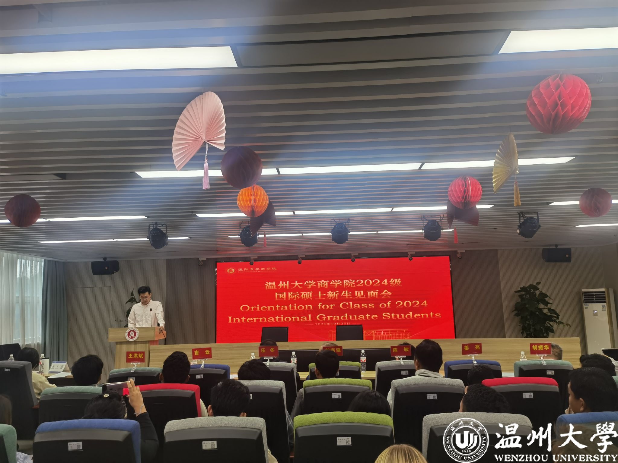 院长罗建利致辞,欢迎硕士研究生新生来温州大学求学,介绍了温州大学和杏吧原创