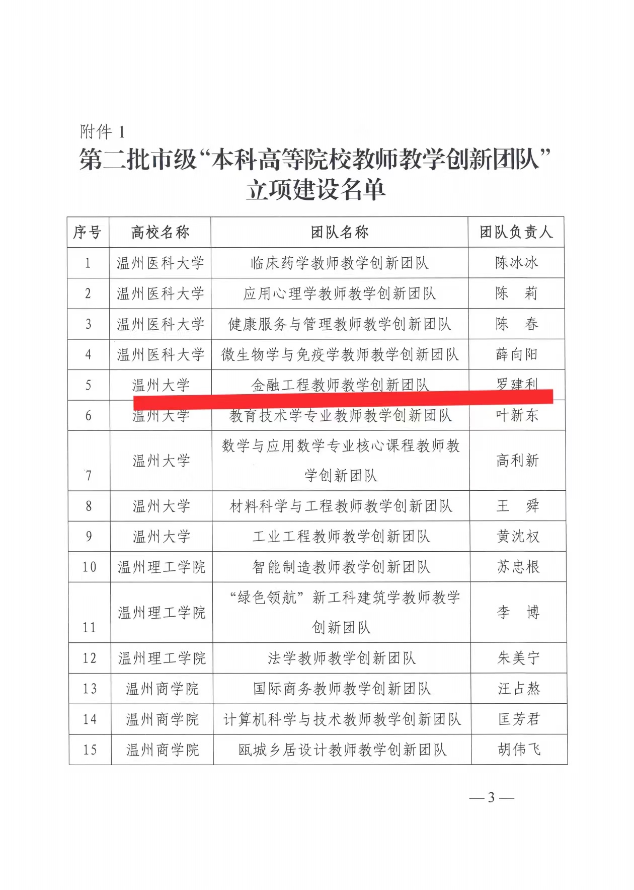 我院罗建利老师带领的金融工程教师教学创新团队获得第二批市级“本科高等院校教师教学创新团队”立项。