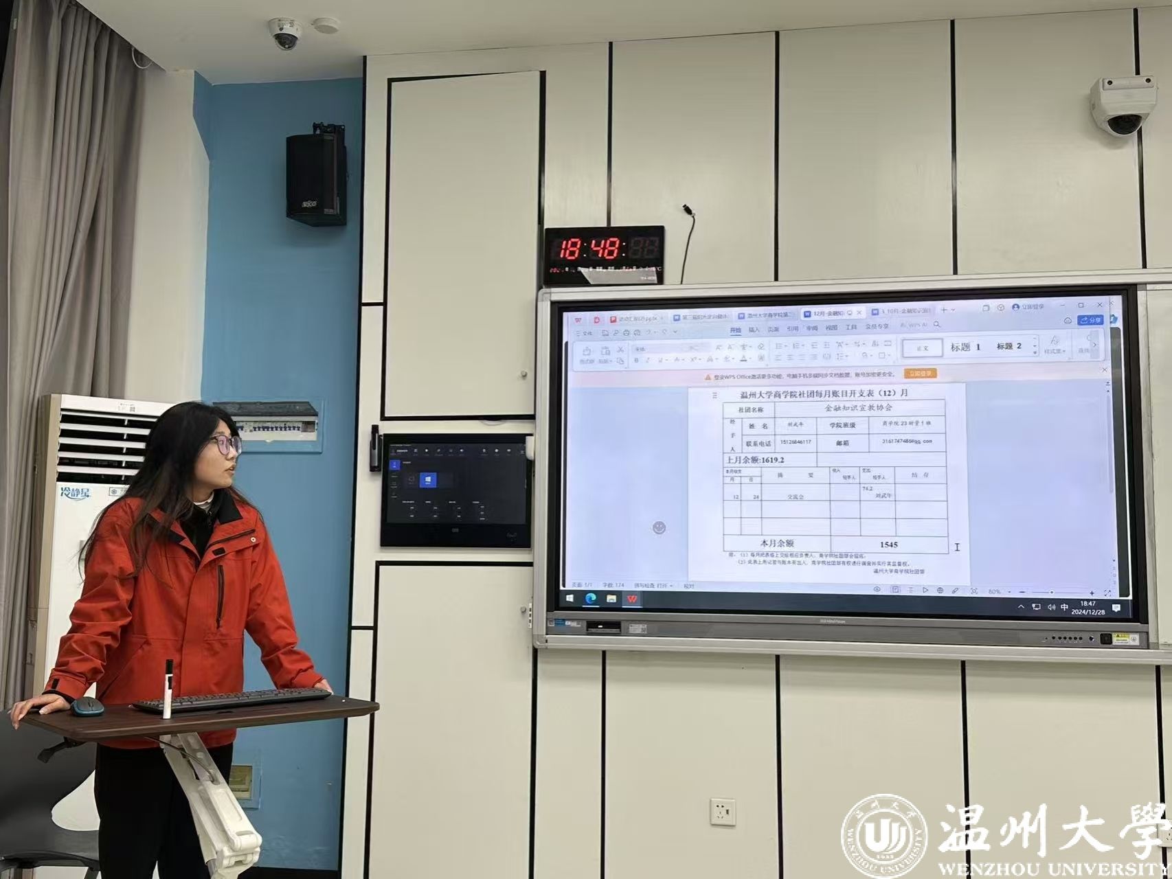 会议最后,协会会长方怡乐同学提出了一项极前瞻性的计划——协会的转型,致力于发展“金融小课堂”。方同学指出,为了做好充分的准备,协会主要核心力量曾多次向温州大学法治协会会长及主要骨干学习和交流,在学习和交流的过程中了解到协会的运转、分工等对于转型至关重要;此外,全体成员的共同努力也是协会转型成功的关键。在此基础上,协会成员将会被分成五个小组,于下学期开始投入到 PPT 制作、教案撰写等筹备工作中。协会一旦转型成功,这不仅有助于拓宽社团的服务范围,提升社团在校园内外的知名度和影响力,还能让协会成员在实践中积累教学经验,增强团队协作能力,为社团的长远发展注入源源不断的动力。