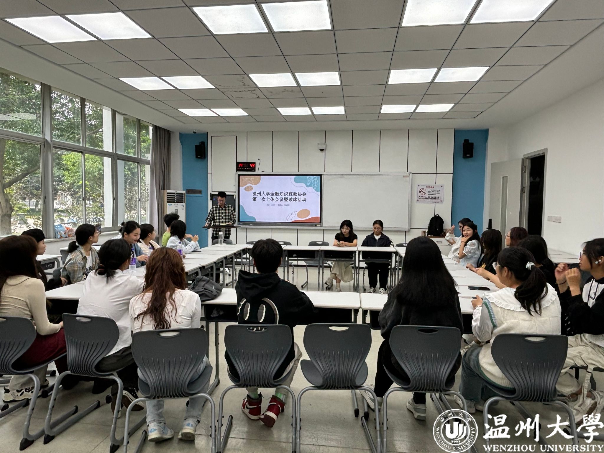 2024年10月13日14时,温州大学金融知识宣教协会在北校区2号楼109教室成功举办了第一次全体会议,旨在加强全体会员对协会活动内容、学分赋予和金融义工小时授予等考核标准的了解,增进会员之间的情谊,促进交流沟通,进一步推进协会的可持续发展以及协会活动的有序开展。
