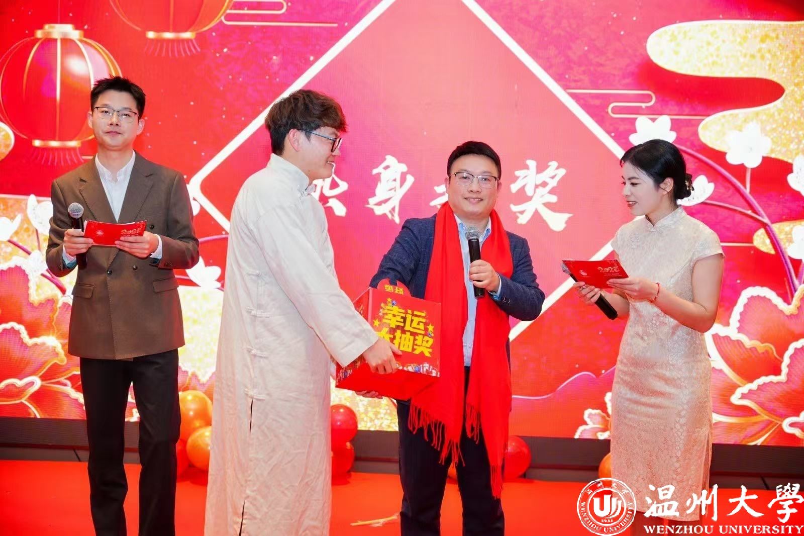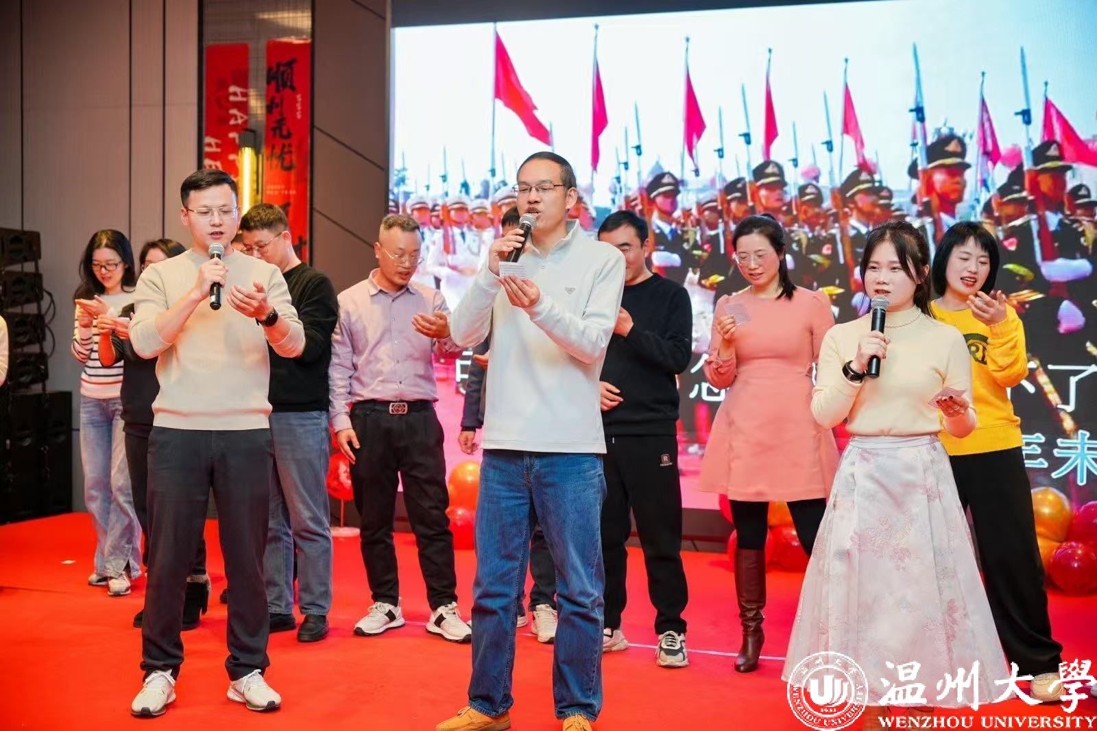 在欢快的氛围中,年会拉开帷幕。学院党委书记唐华上台致辞,他首先对全体教师一年来对学院工作的辛勤付出表示感谢,肯定了大家在教学教育教学、科研、产教融合和竞赛等方面取得的优秀成果,这为学院的发展书写了浓墨重彩的一笔。他希望老师们在假期好好休息,养精蓄锐,待新的学期到来时,凝聚全学院的力量,以更加饱满的热情和昂扬的斗志投入到工作当中,争取在明年创造更为优异的成绩。最后,唐书记向各位老师及他们的家人送上了真挚的新年祝福,祝愿大家身体健康、万事如意、新年快乐。